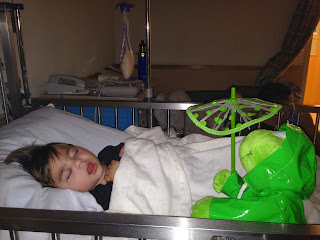 And so it was that Kohl had his sixth procedure and third hospital stay of his young life this past weekend and got a Nissen Fundoplication as an early Christmas present. All things considered, it was a painless hospital stay. Mom, Dad and Kohl’s BFF Floyd the Frog were with him the whole time.