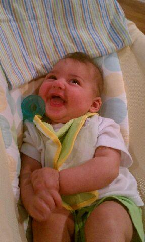Perhaps more inexplicable than his fascination with Sophie the Giraffe is Kohl’s fascination with the ceiling fan in the living room of the Chateau. We are at a loss as to why he likes it so much, but as long as it continues to make him do this …